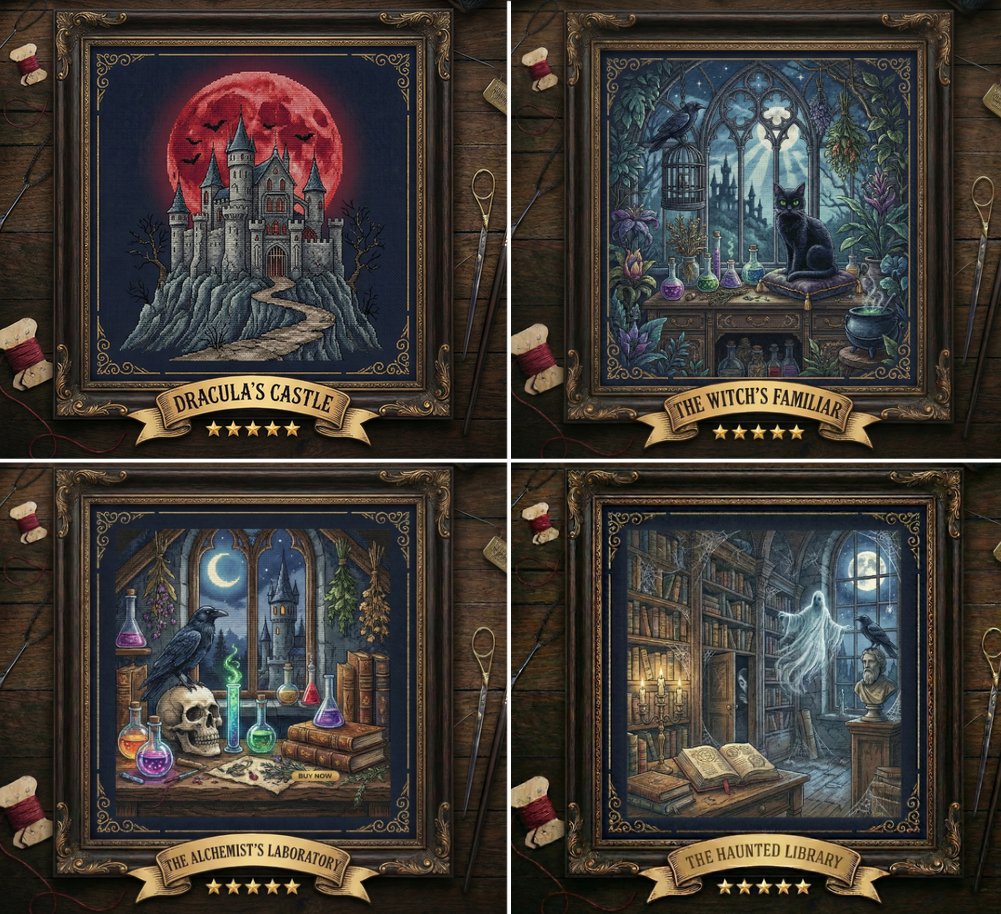 ✨ Enter a world where cross stitch becomes art — a world of cathedrals, myths, relics, curiosities & enchanted darkness. ✨